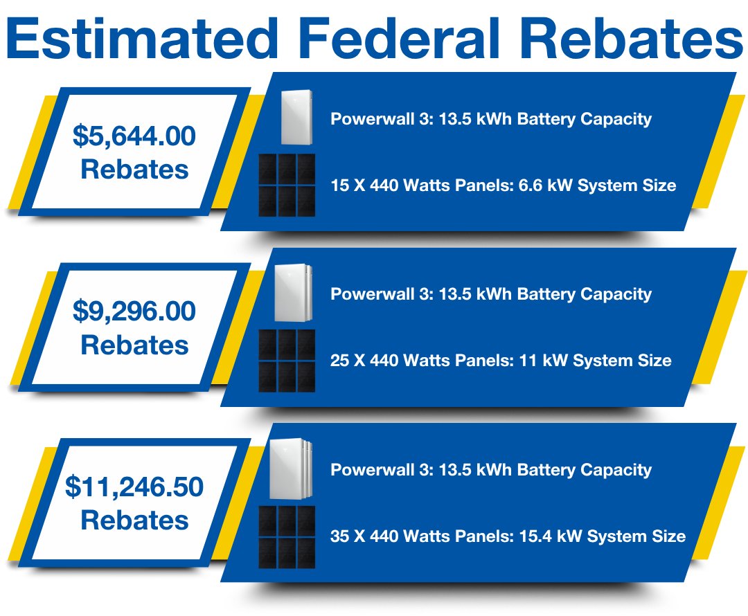 What differentiates us from all other retailers is that we don’t just offer rebates. Our unbeatable Tesla package prices are made possible by our strong relationship with Tesla and our in-house brand, Max Power Solar Panels. Our systems are designed for premium buyers at unbeatable prices. This means that, in addition to the rebates shown, you will receive an additional discount from us and Tesla, along with a warranty backed by both companies to provide you with the extra assurance that many new companies couldn’t offer.